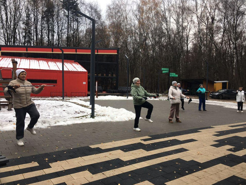 👫Участники проекта «Активное долголетие» Ленинского городского округа, тепло одевшись, с радостью отправились в парк для занятия скандинавской ходьбой.